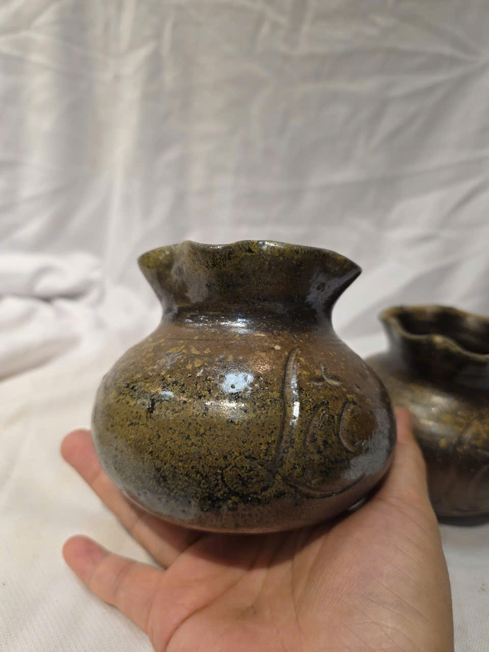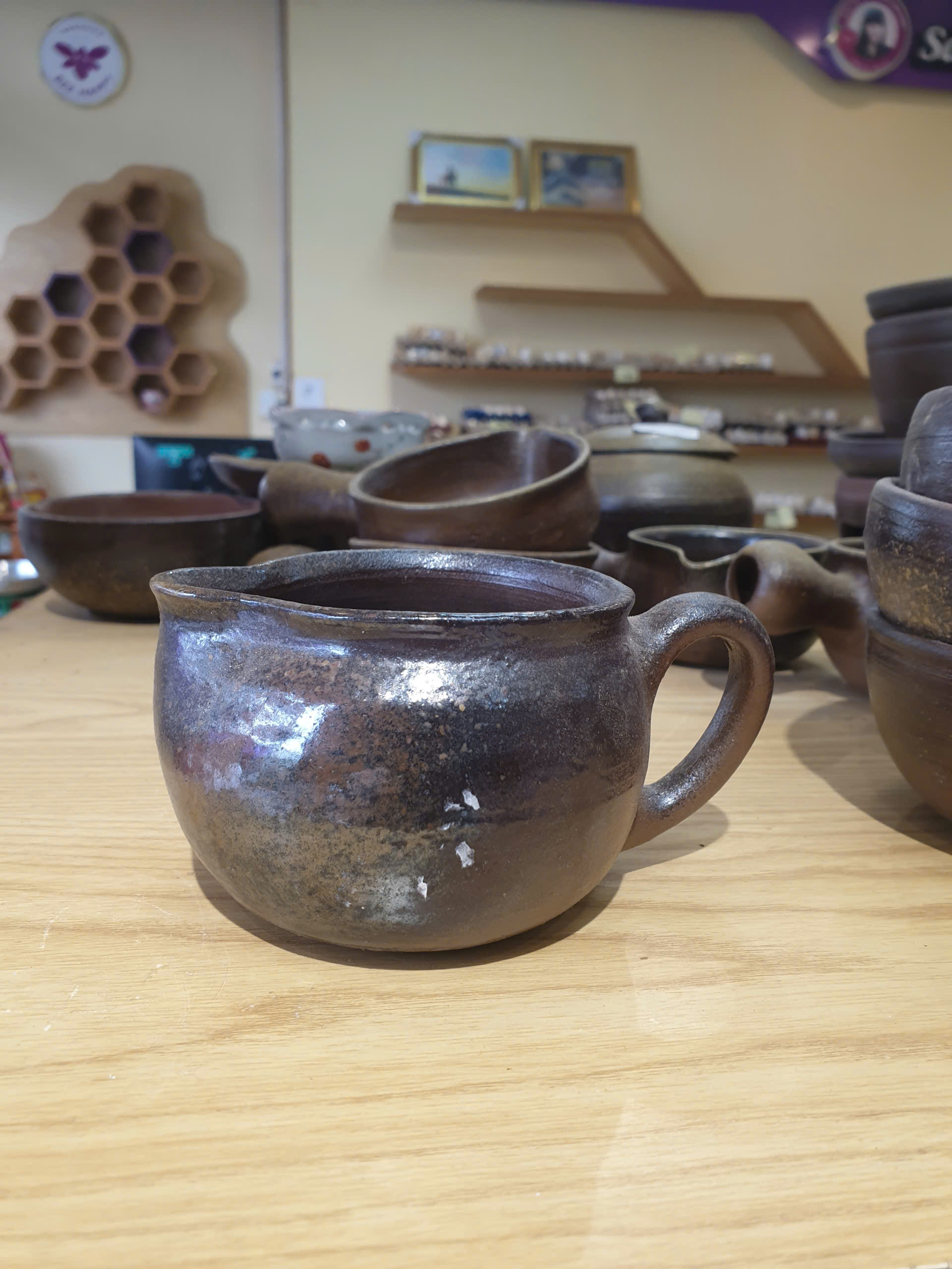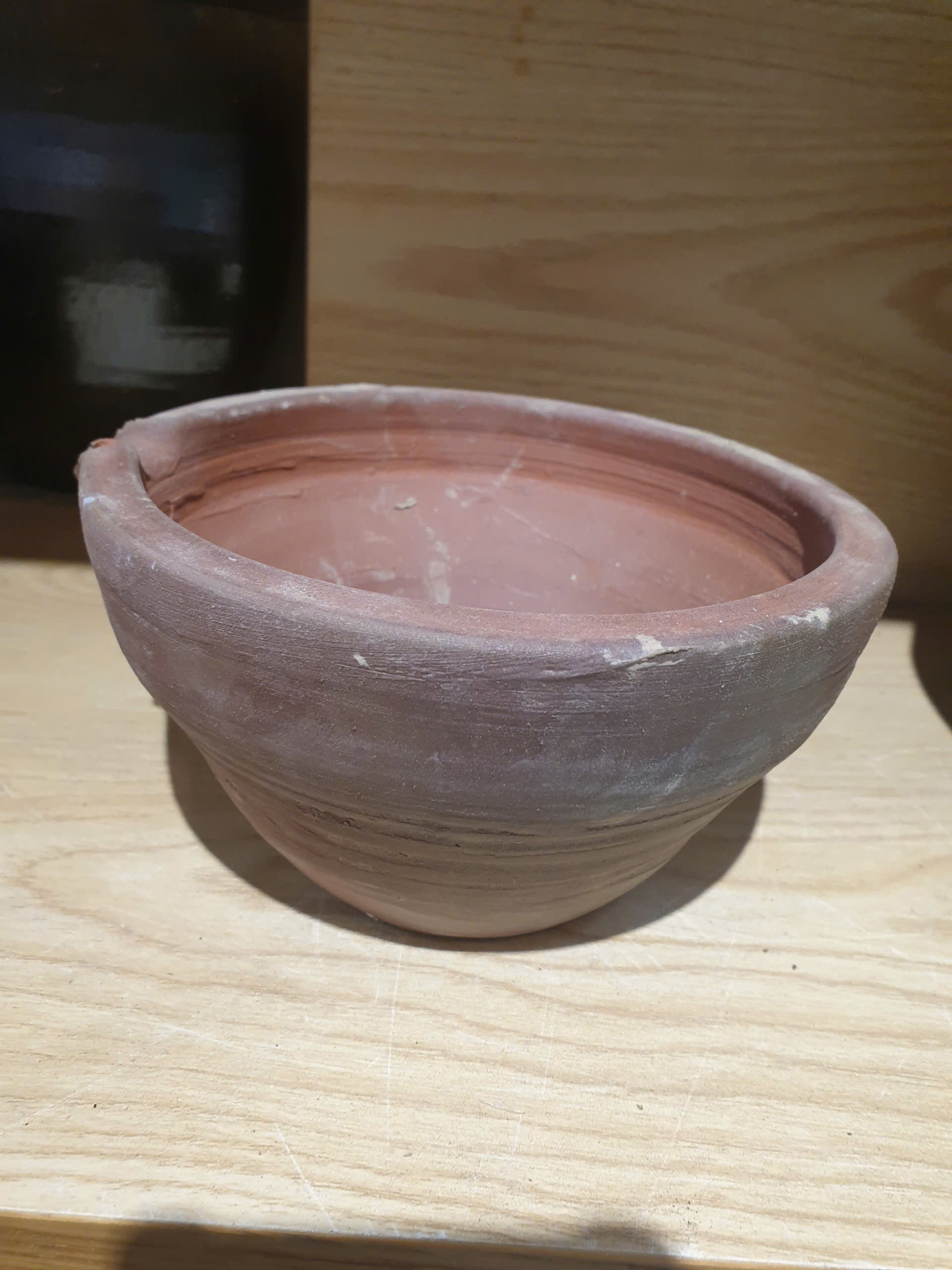 Vì không tráng men, bạn có thể thấy rõ màu đất, vệt lửa, dấu tay.