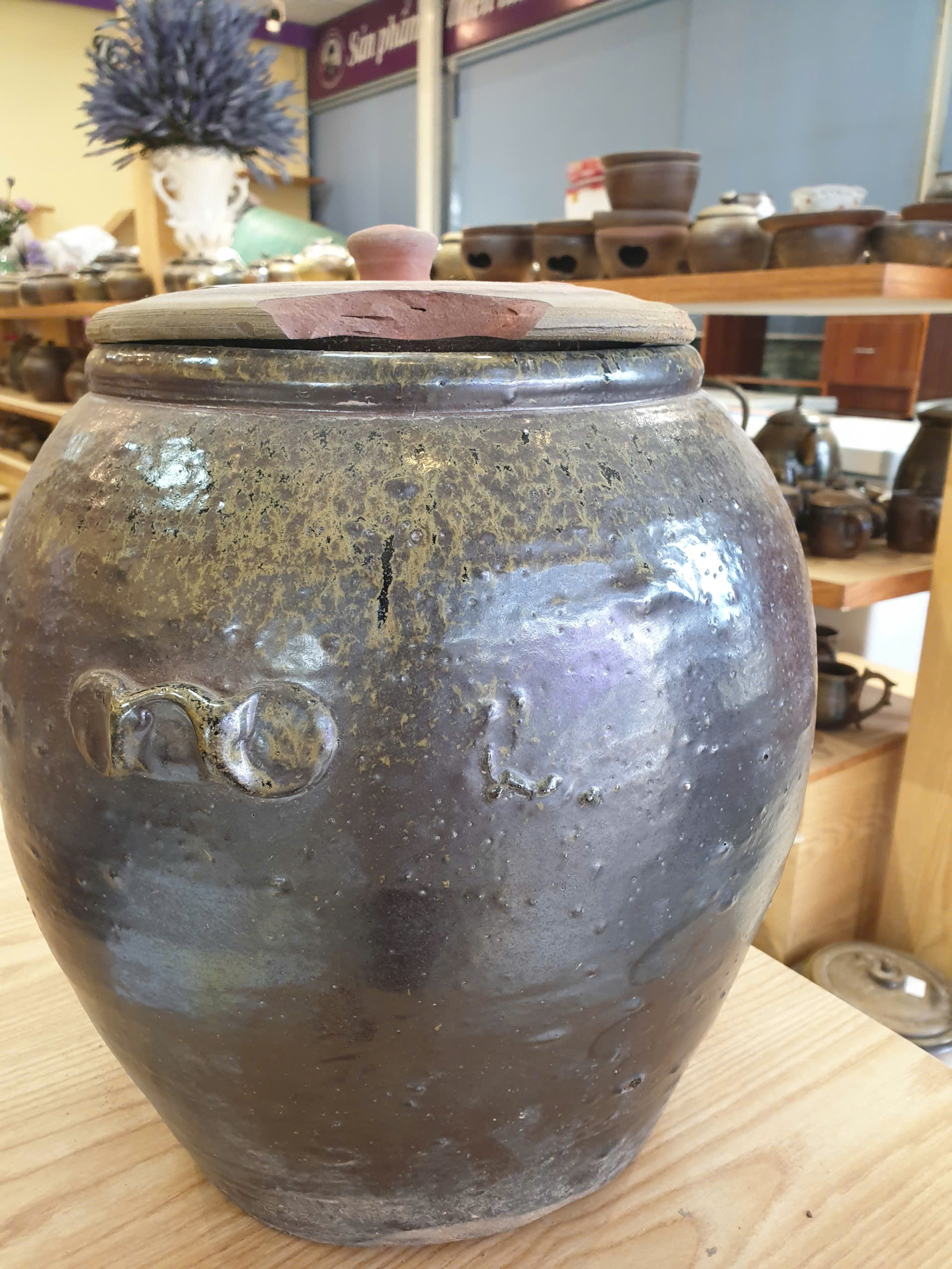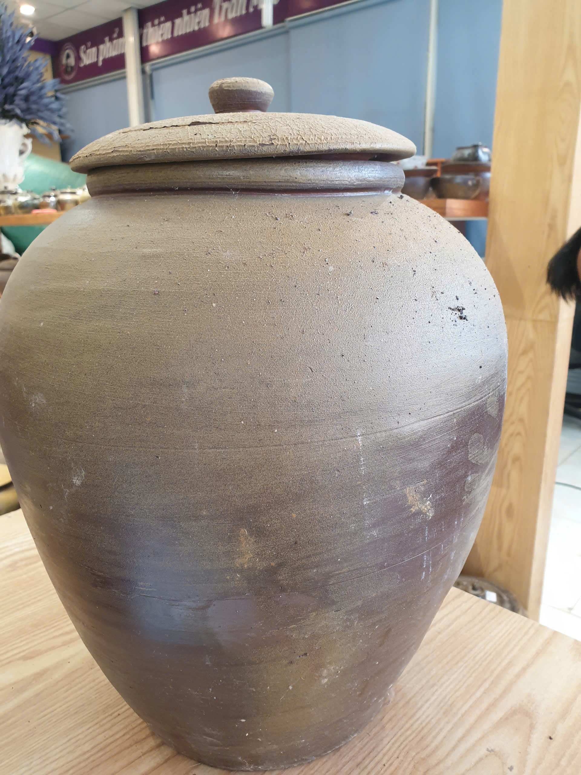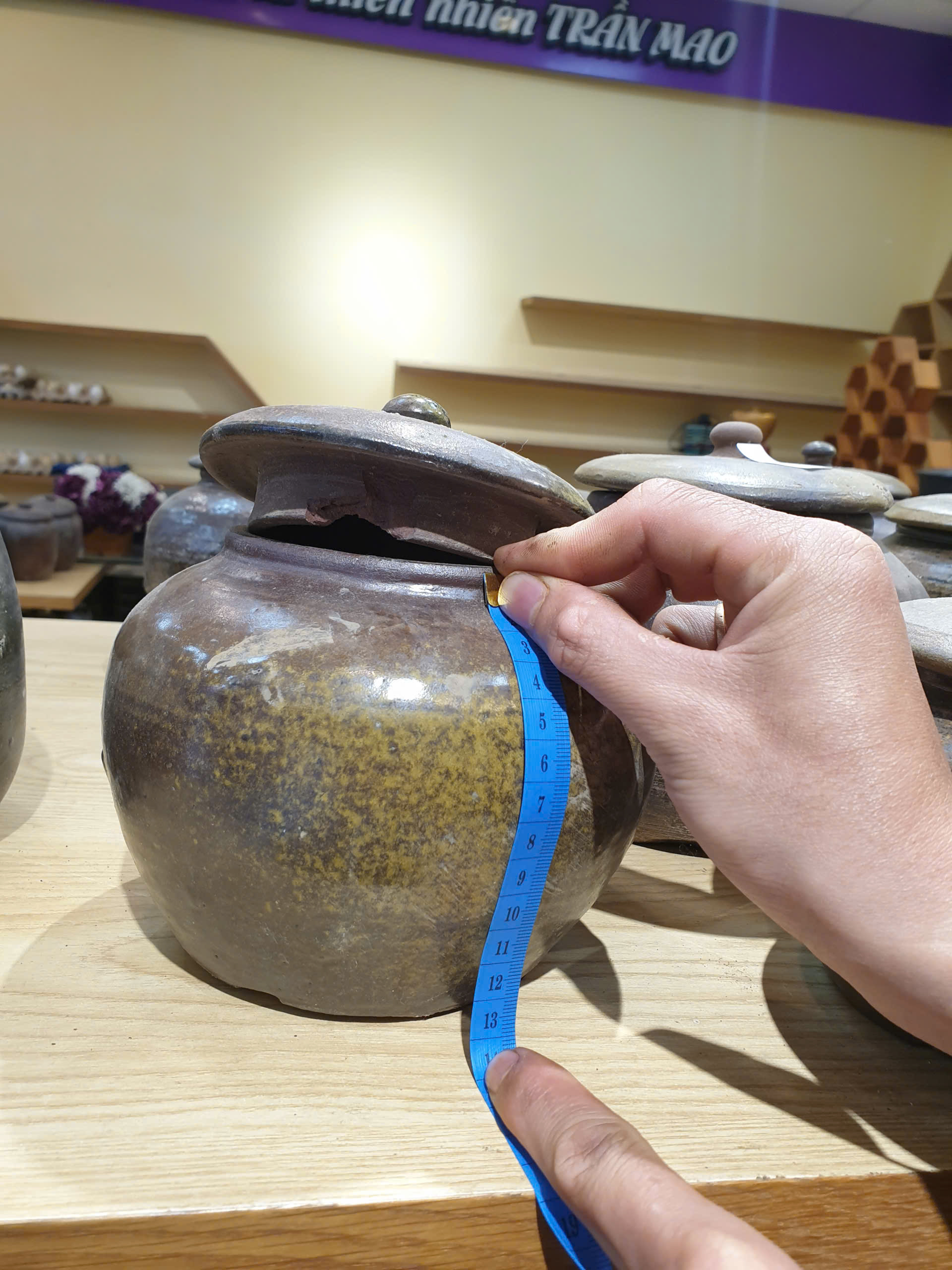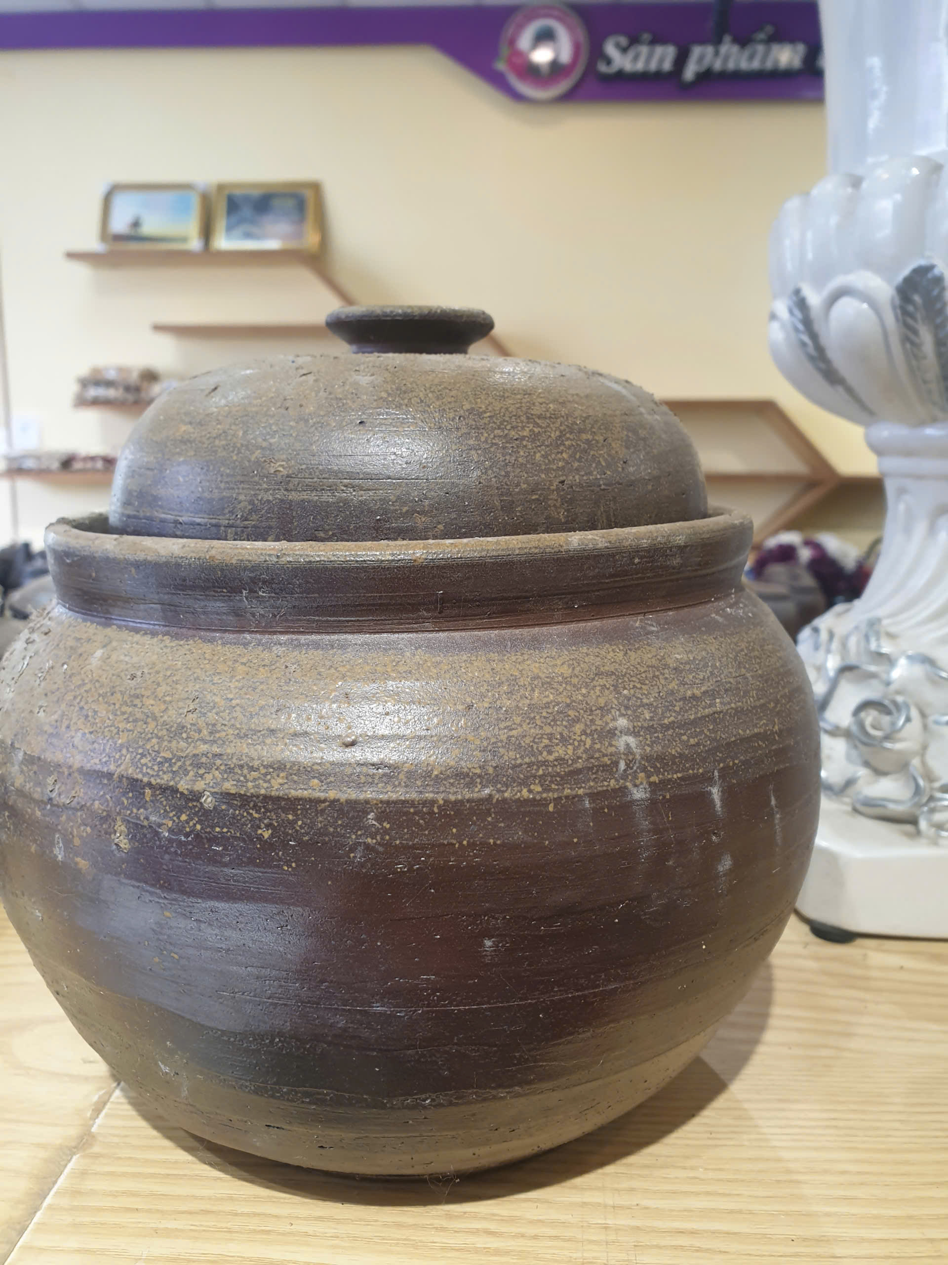 Sứt 1 xíu ở miệng nắp, đậy vẫn khít, còn chum không bị vỡ, nứt, không ảnh hưởng đến công năng sản phẩm
