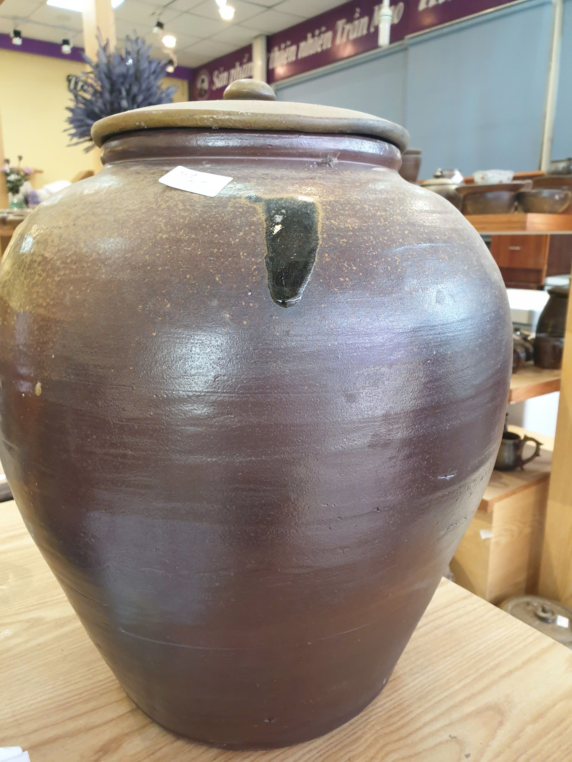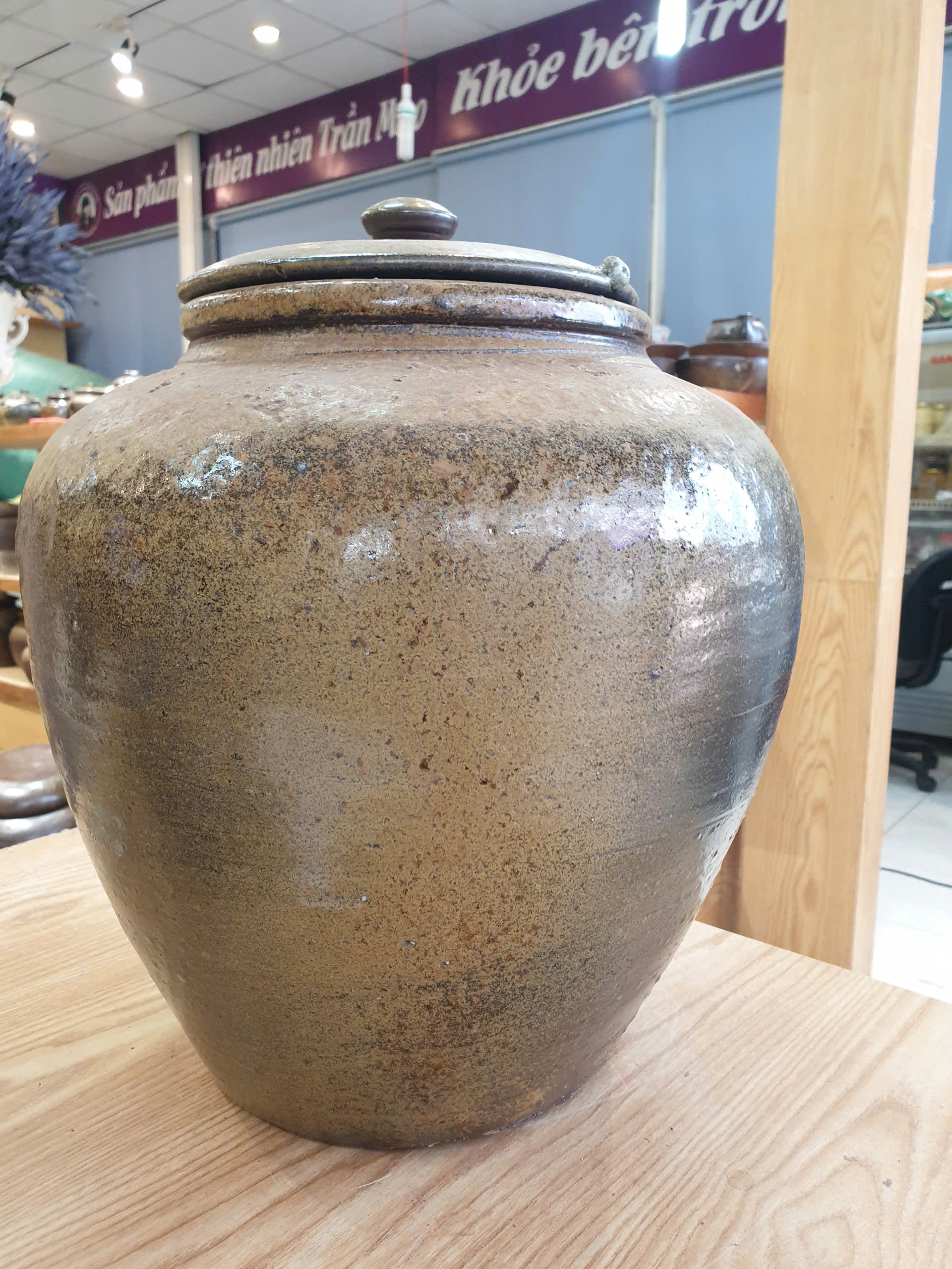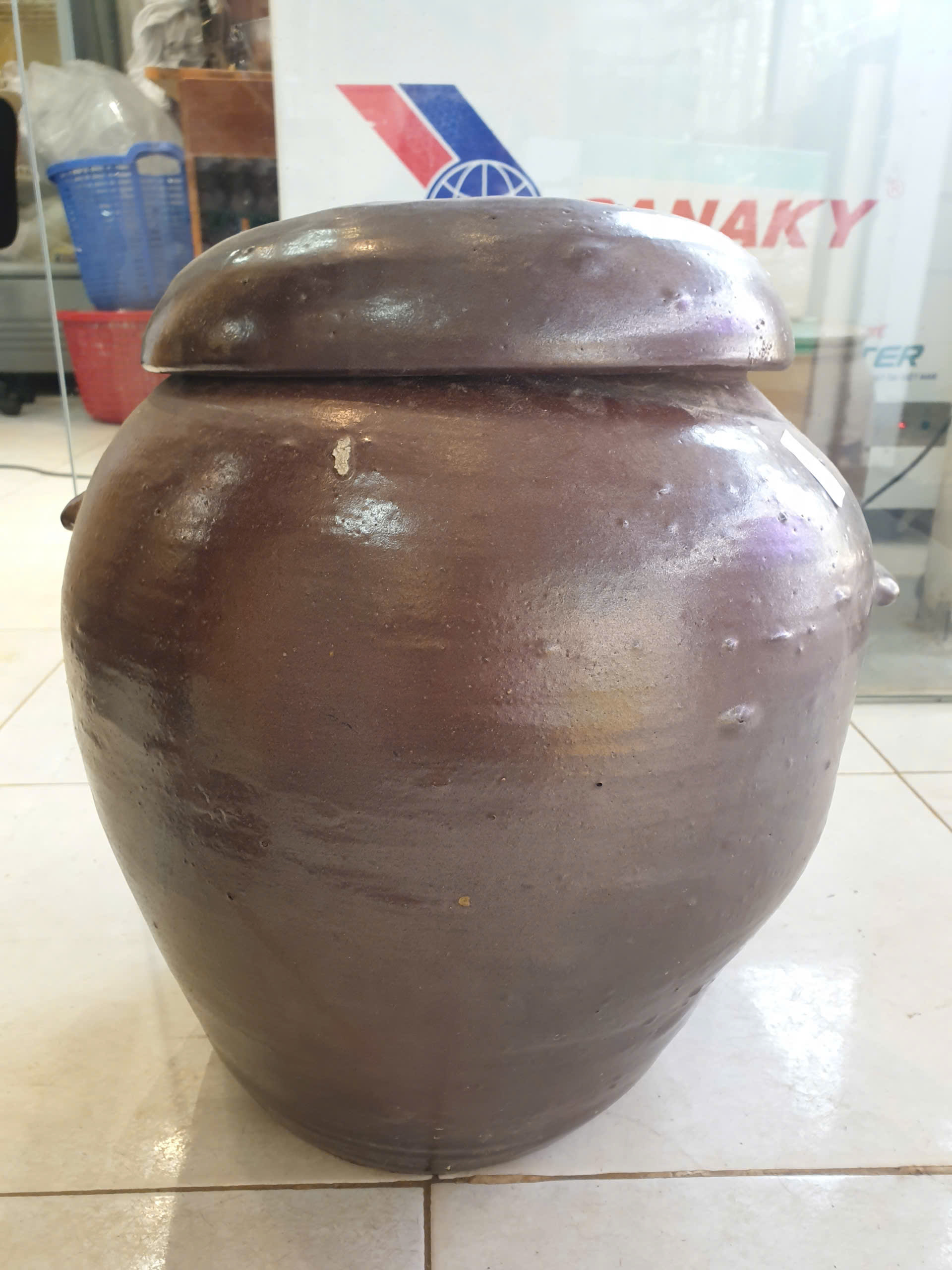 Sứt 1 xíu ở miệng nắp, đậy vẫn khít, còn chum không bị vỡ, nứt, không ảnh hưởng đến công năng sản phẩm