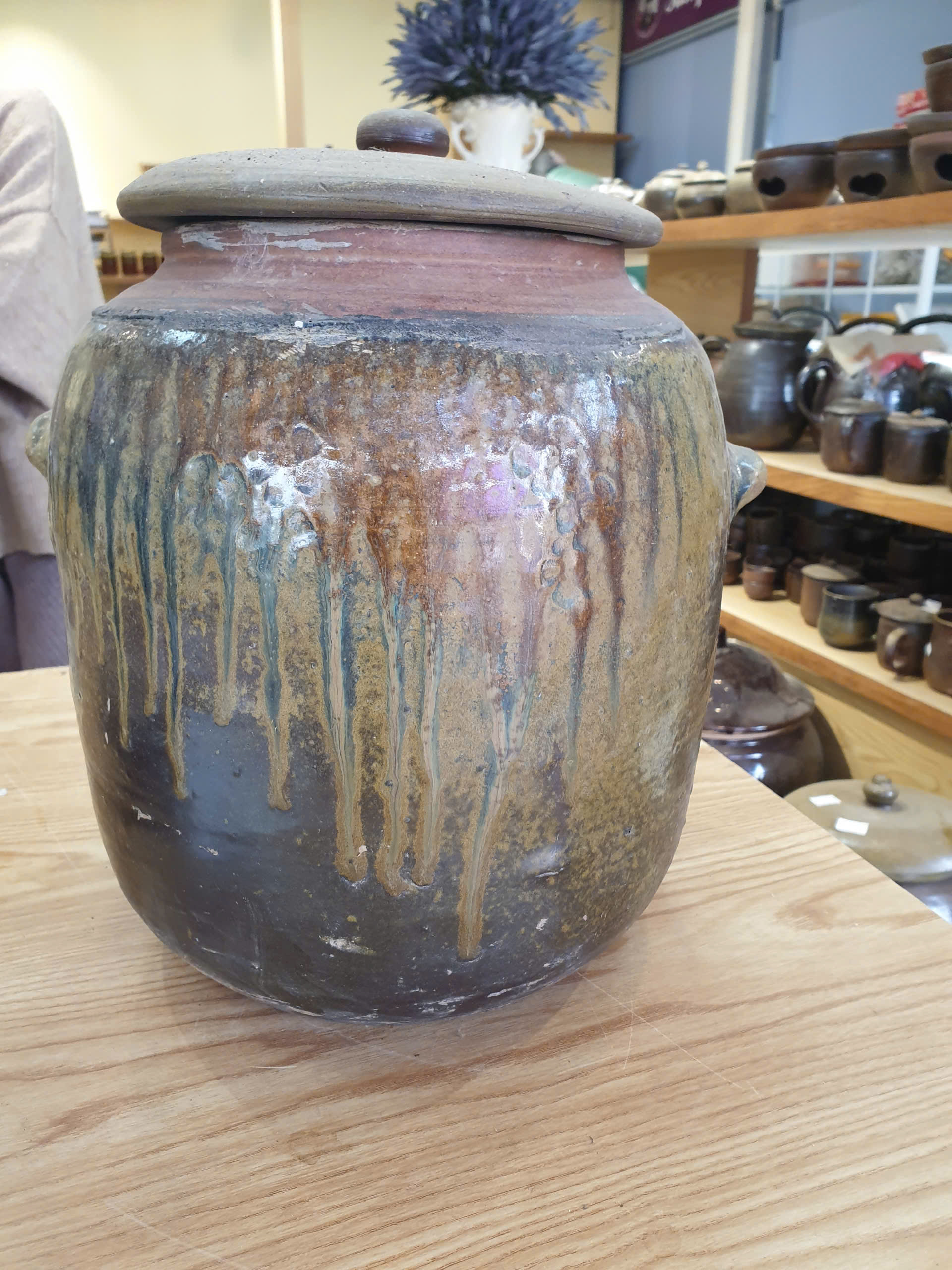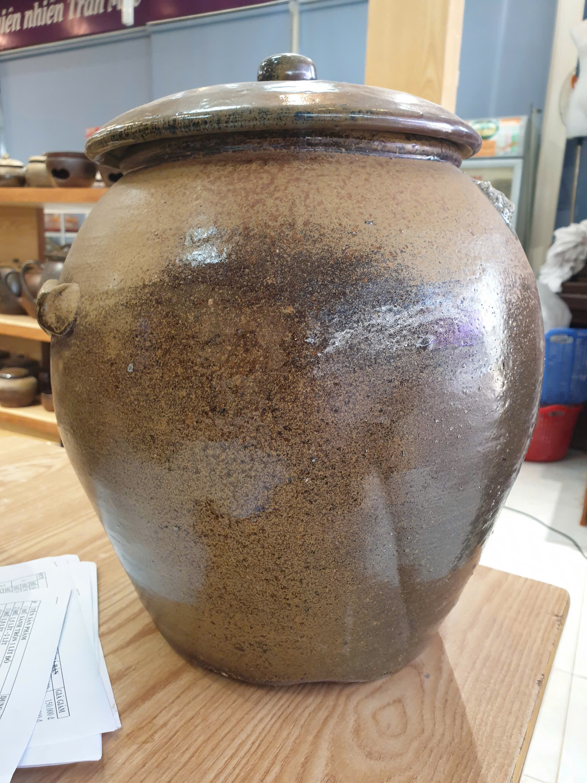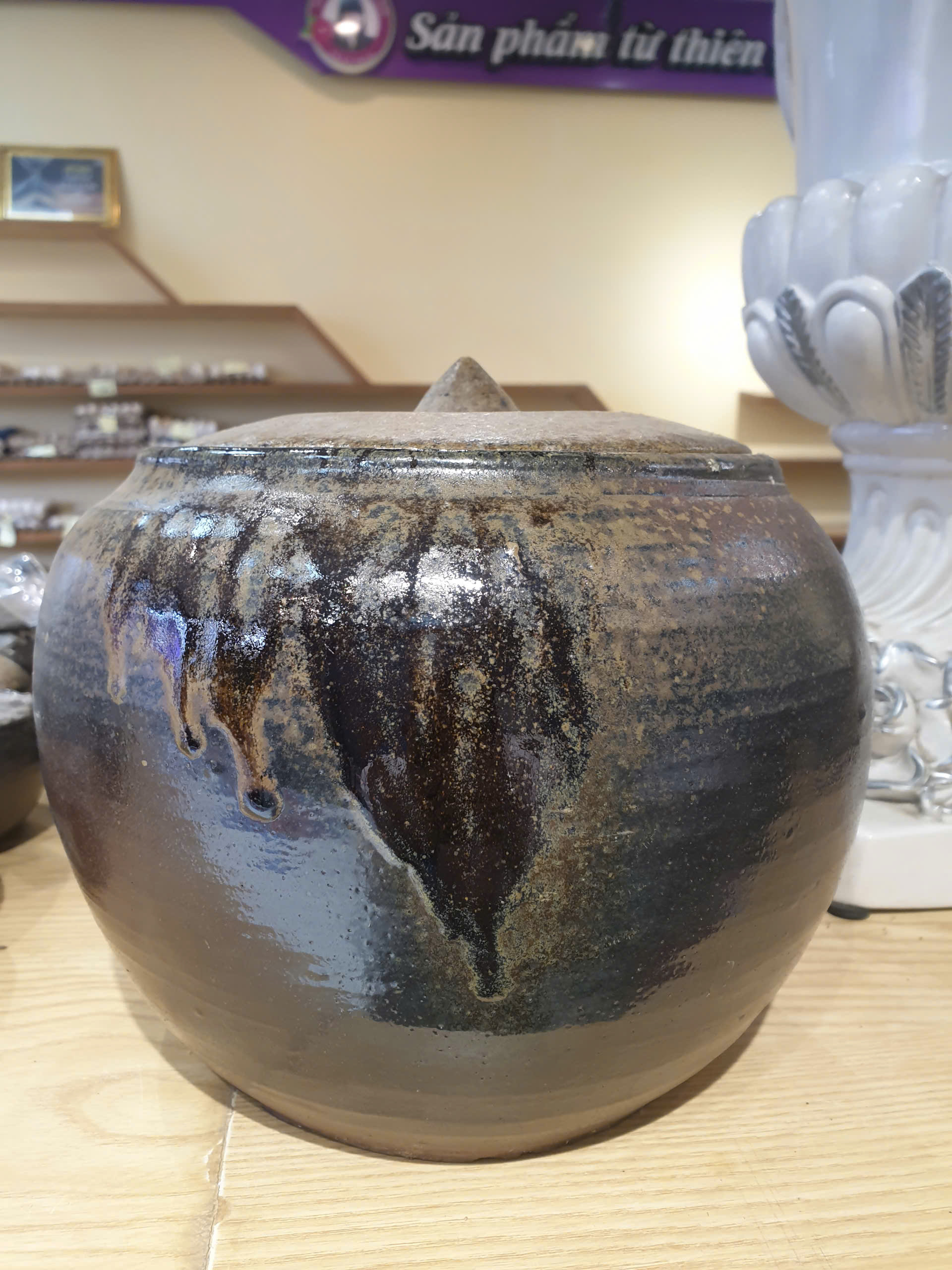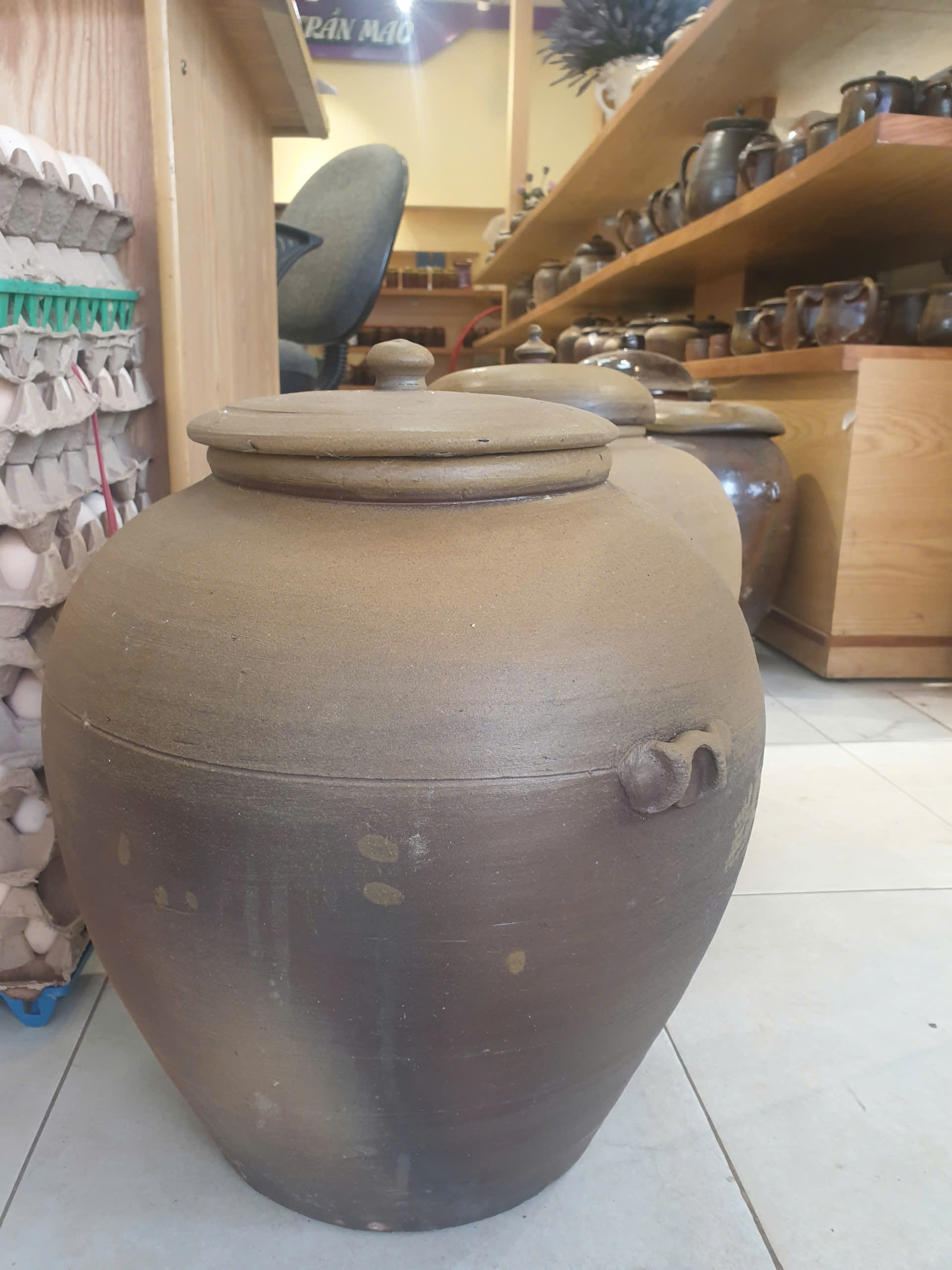 Sứt 1 xíu ở miệng nắp, đậy vẫn khít, còn chum không bị vỡ, nứt, không ảnh hưởng đến công năng sản phẩm
