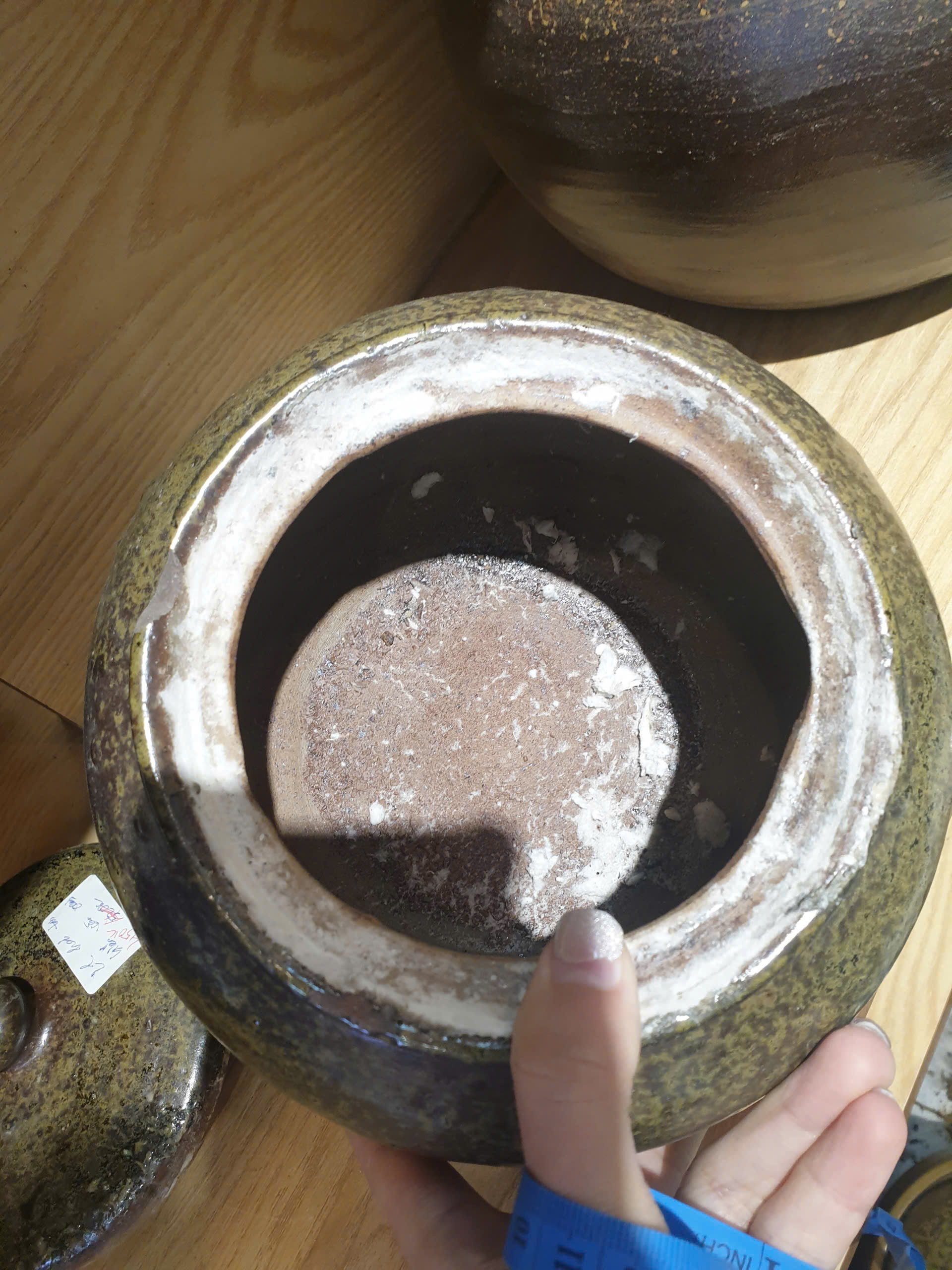 Lỗi sứt 1 xíu ở miệng hũ không nứt vào bên trong và bên ngoài cũng không bị